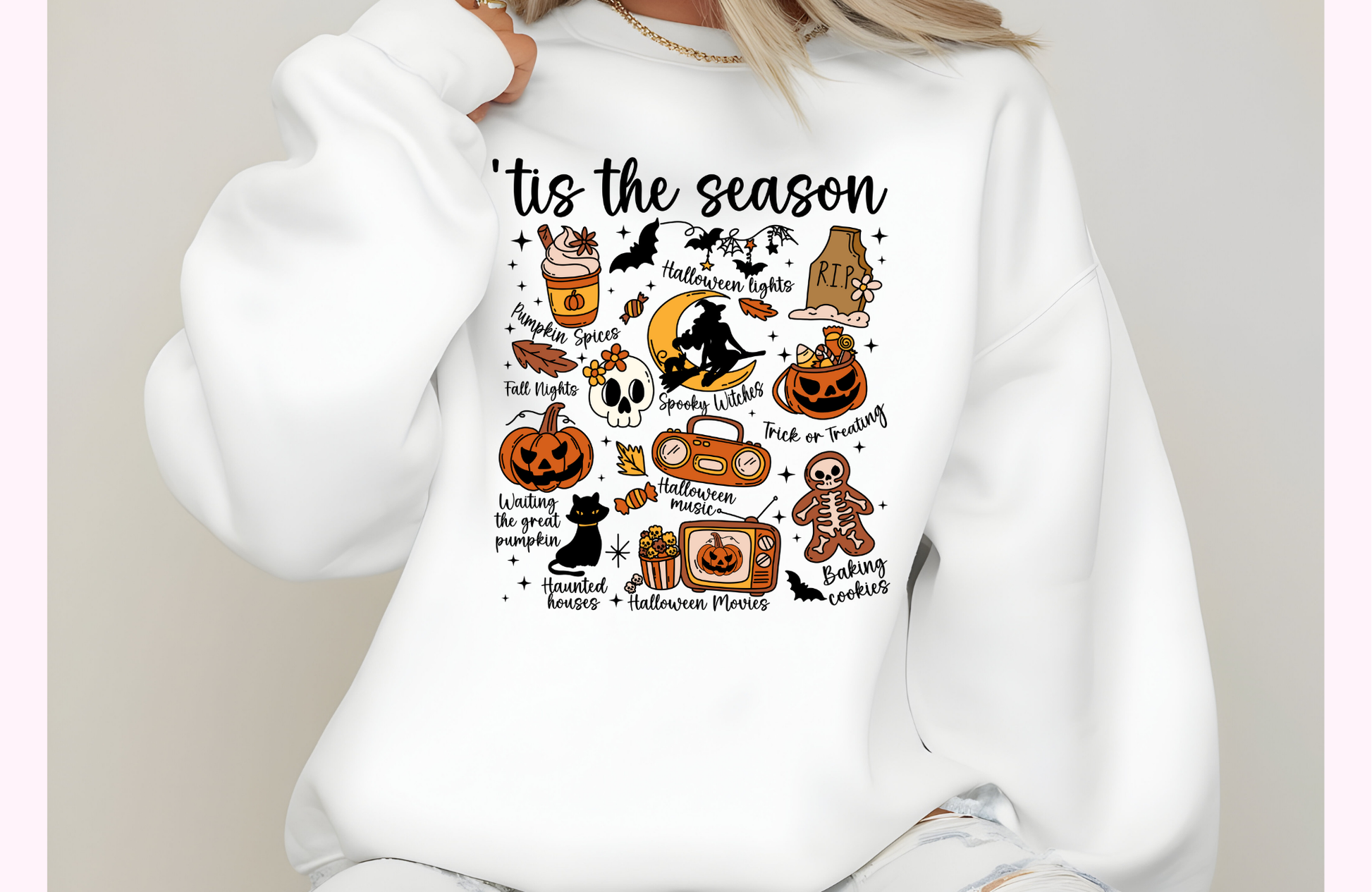 Get into the spooky spirit with our Gildan 18000 Halloween Doodles Sweatshirt – the coziest way to celebrate your favorite season. This unisex crewneck features a playful collection of Halloween-inspired doodles like ghosts, pumpkins, bats, and spiderwebs, all arranged in a trendy, eye-catching design. Whether you're carving pumpkins, sipping cider, or watching scary movies, this sweatshirt is a must-have for your fall wardrobe.