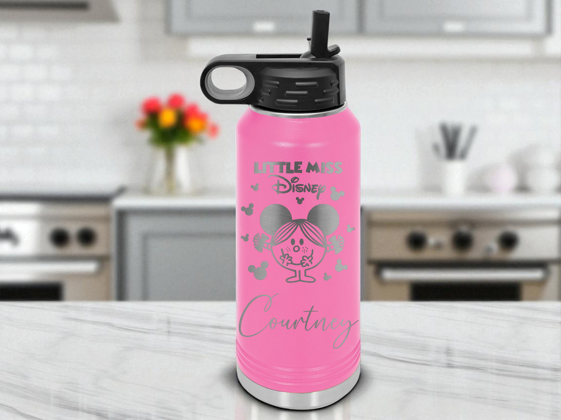 Little Miss Disney Personalized 32oz Engraved Water Bottle – Stainless Steel, Dishwasher Safe, Custom Name