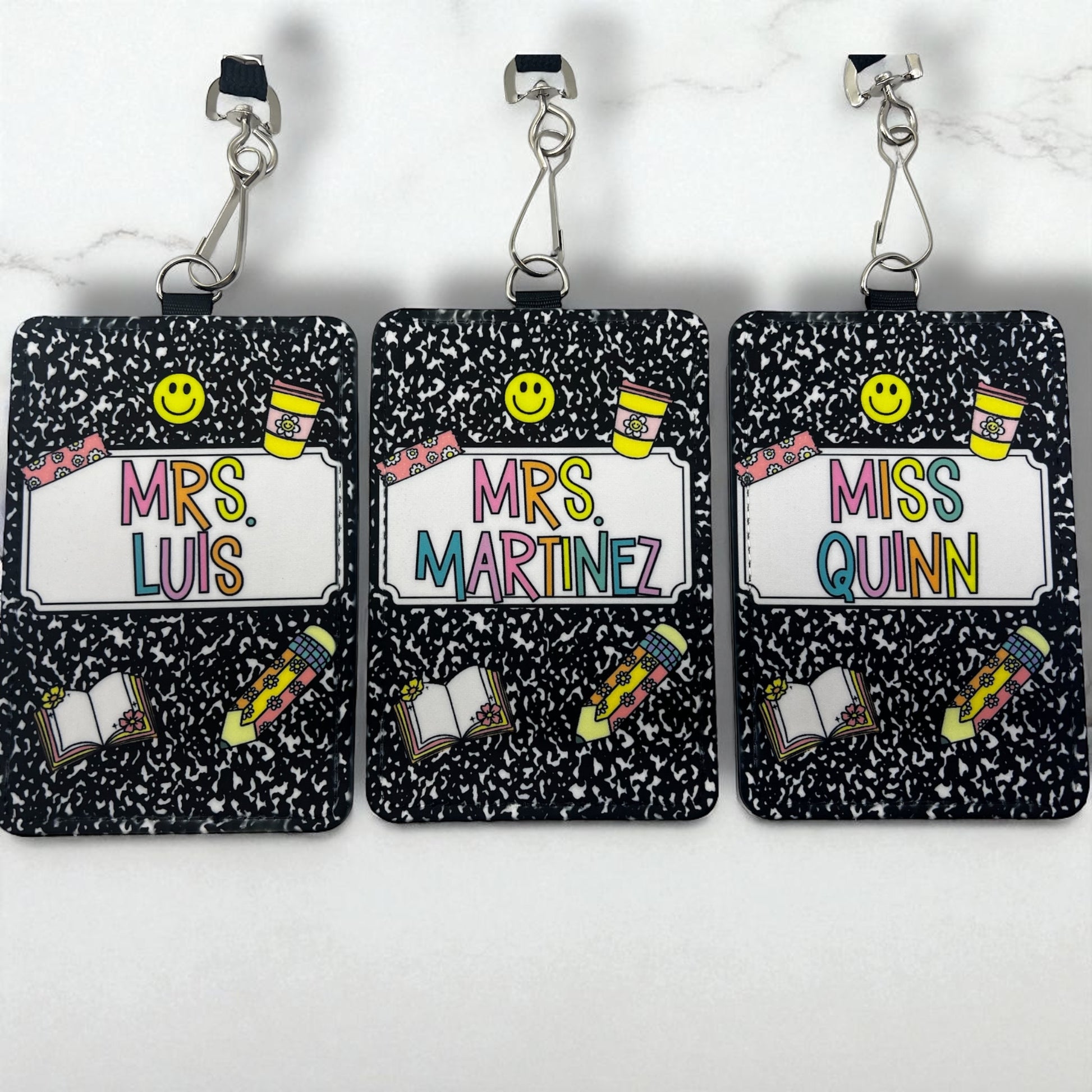 Personalized Composition Notebook Teacher ID Badge Holder with Lanyard