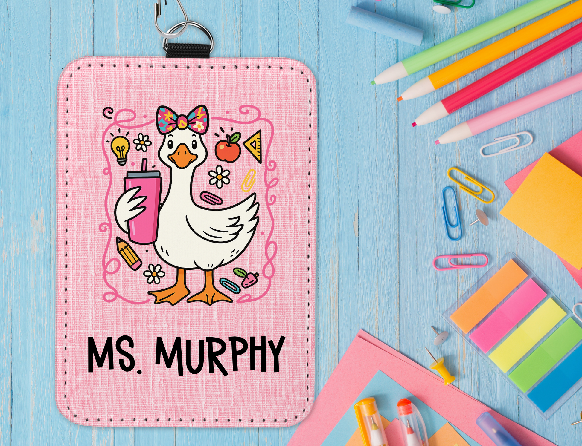 Personalized Classroom-Themed Teacher ID Badge Holder with Lanyard