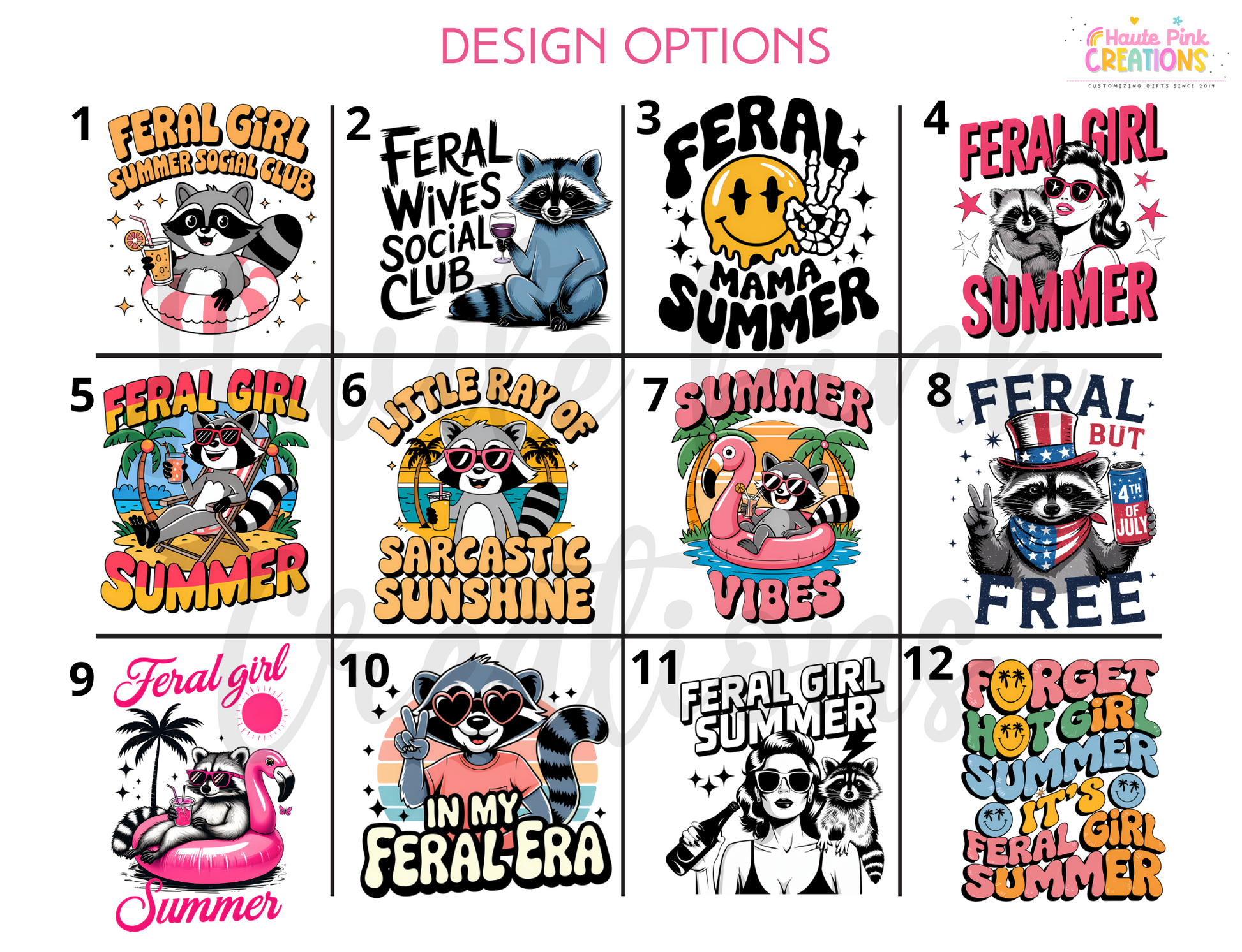 Choose from multiple Feral Girl Summer designs