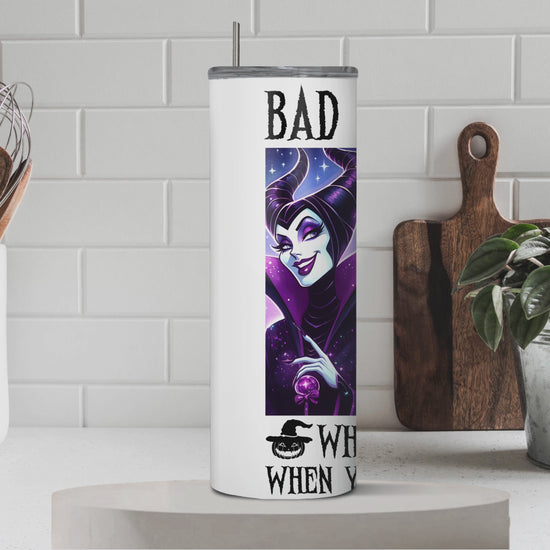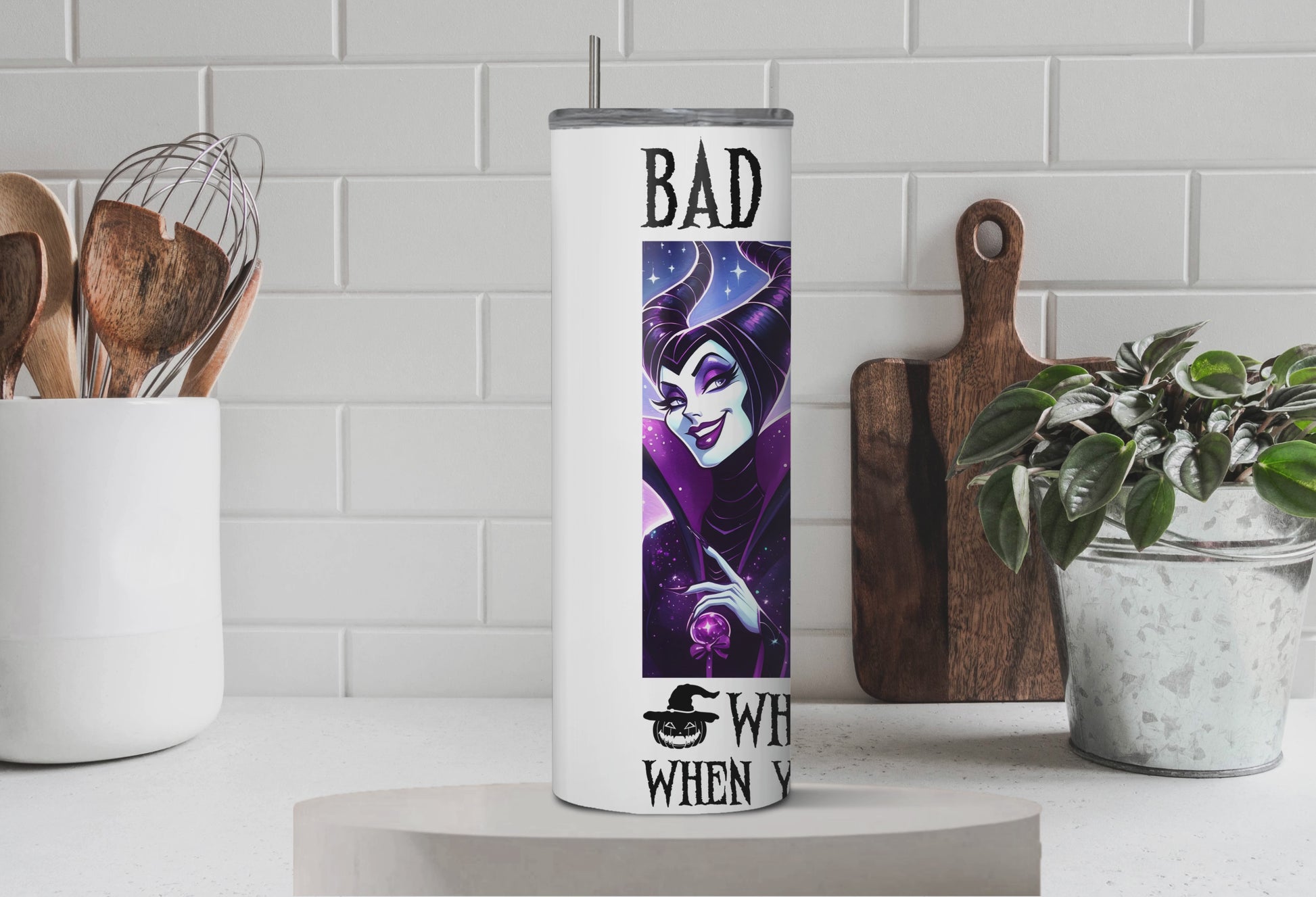 Disney Villains 20oz Skinny Tumbler – “Be a Princess When You Can Be a Queen” Sublimated Cup with Straw