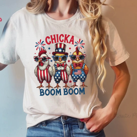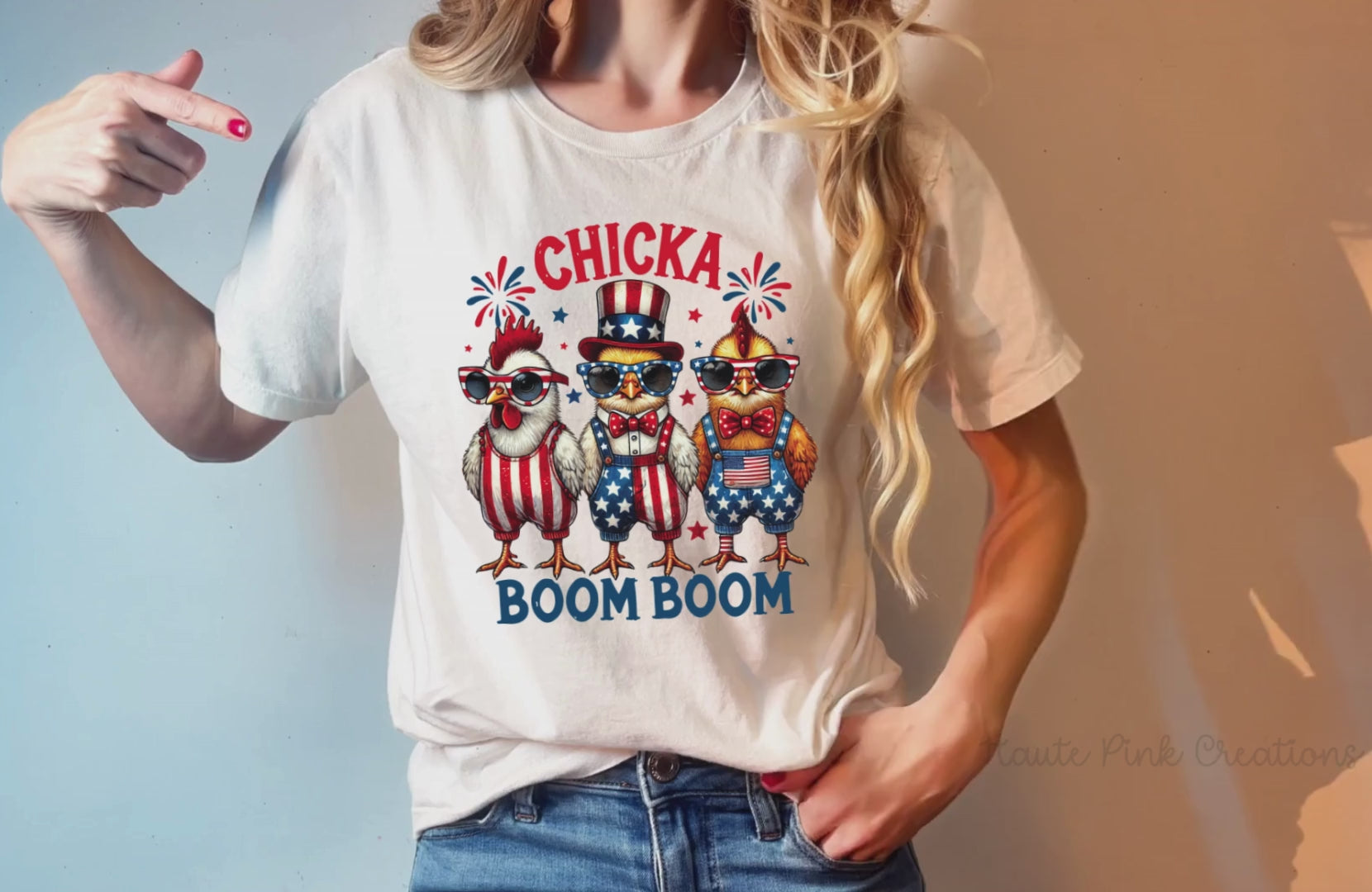 Cue the fireworks and the feathers—Chicka Boom Boom, it’s party time, poultry-style! This unisex Bella + Canvas tee features a cluckin’ adorable design of patriotic chickens ready to celebrate the red, white, and BOOM. Whether you're grilling, chilling, or doing the chicken dance at your 4th of July BBQ, this tee brings the laughs and the freedom vibes.